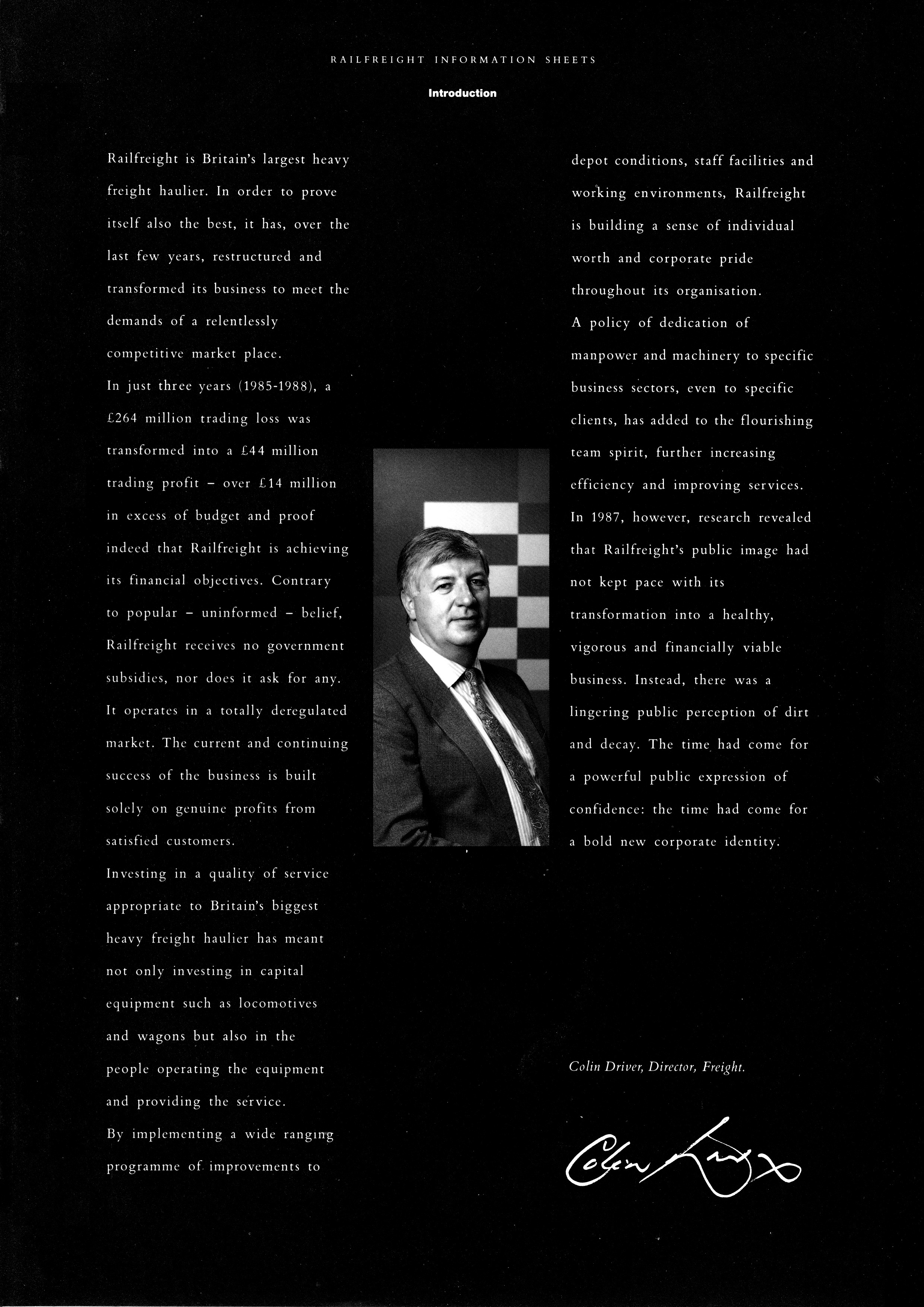 In November 1987, Railfreight released a booklet to mark the launch of the new corporate identity, designed by Roundel.